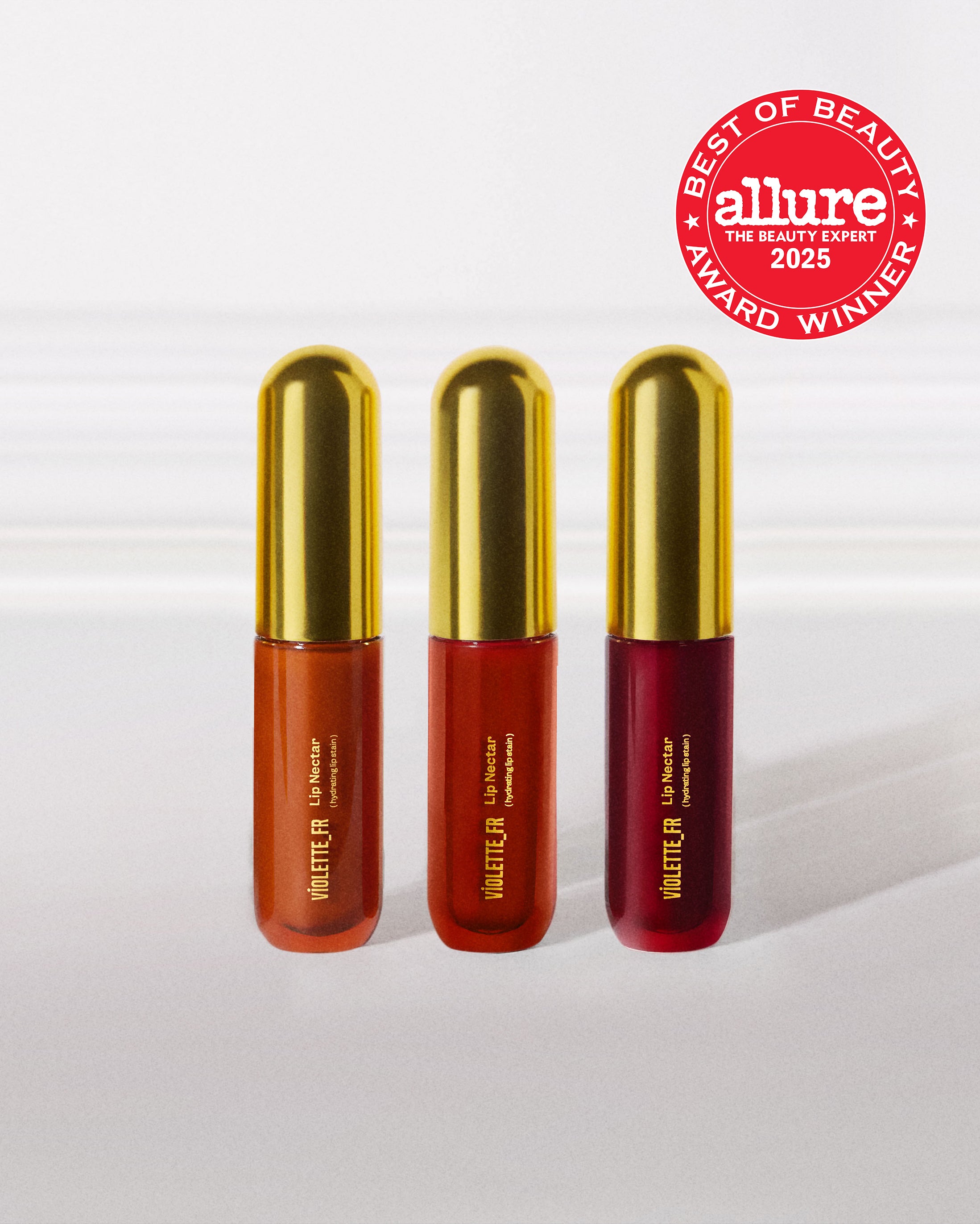 Choose three elevated Lip Nectar shades—our high-shine, ultra-hydrating, high-performance stain that’s never sticky or drying. The innovative oil-in-water emulsion blends the long-wear pigment of a stain with nourishing ingredients like squalane, shea butter, ceramides, and hyaluronic acid to deliver hydration and lasting color for up to 8 hours. Clinically proven, it instantly boosts moisture while keeping lips soft and comfortable. Inspired by nature, each shade blooms into its richest color just after application, with hues drawn from nectar-rich flowers for an indulgent, high-shine finish and a buildable, long-lasting stain.