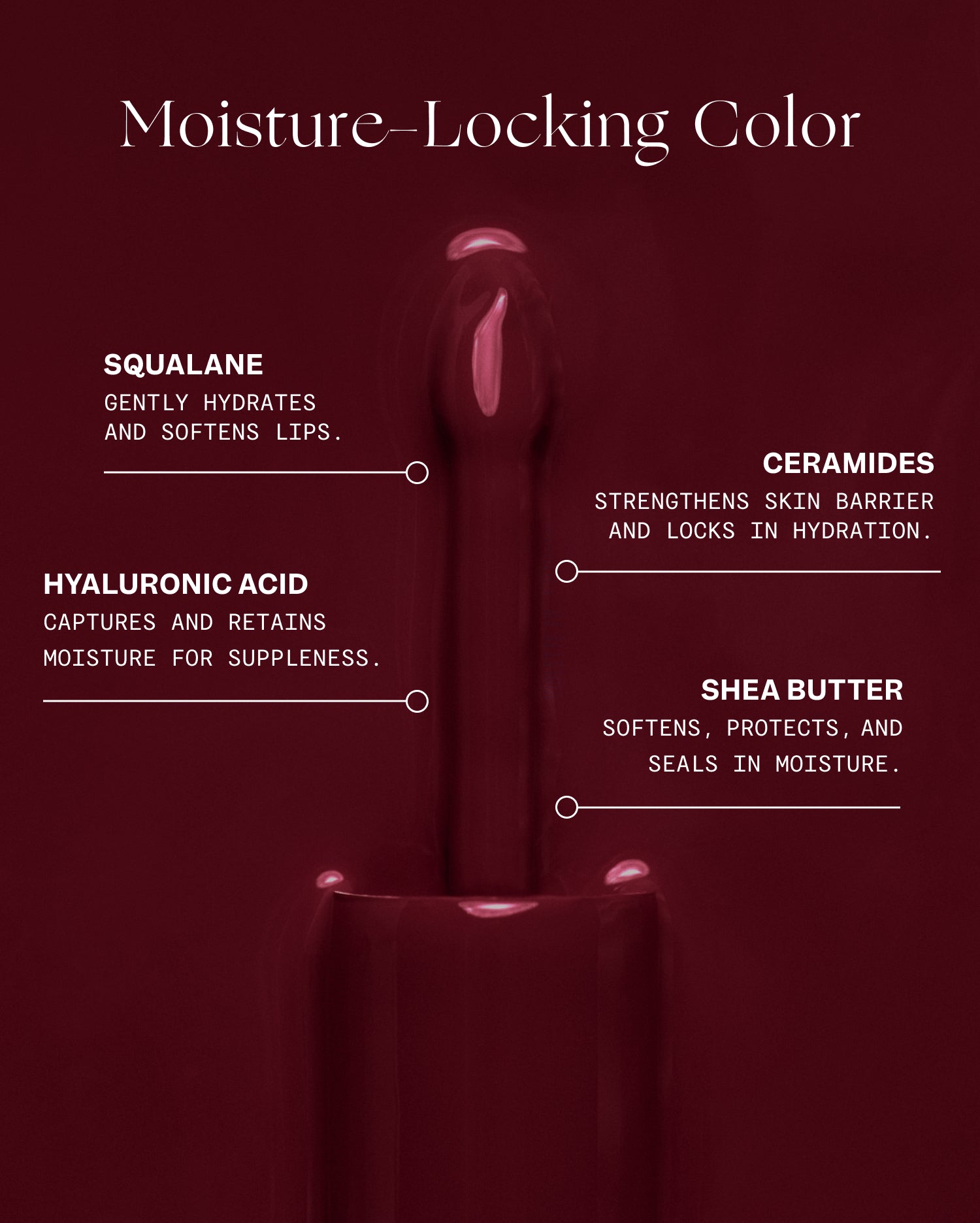• Provides long-lasting moisture to the lip epithelium for up to 8 hours
