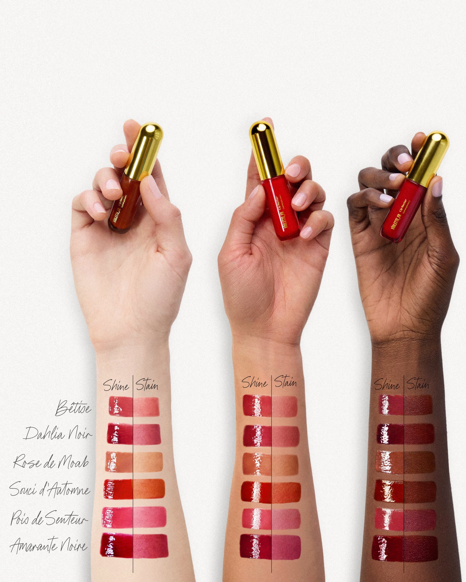 Violette’s Inspiration: “The idea for Lip Nectar came to me when I couldn’t find a truly ‘grown-up’ lip stain. I wanted to create a product that was high-performance while being deeply nourishing and comfortable to apply and wear. My vision was for it to feel indulgent and sensual, like jam—rich in texture, with a luxurious burst of color, the perfect amount of shine, and just the right stain, all without the stickiness.”